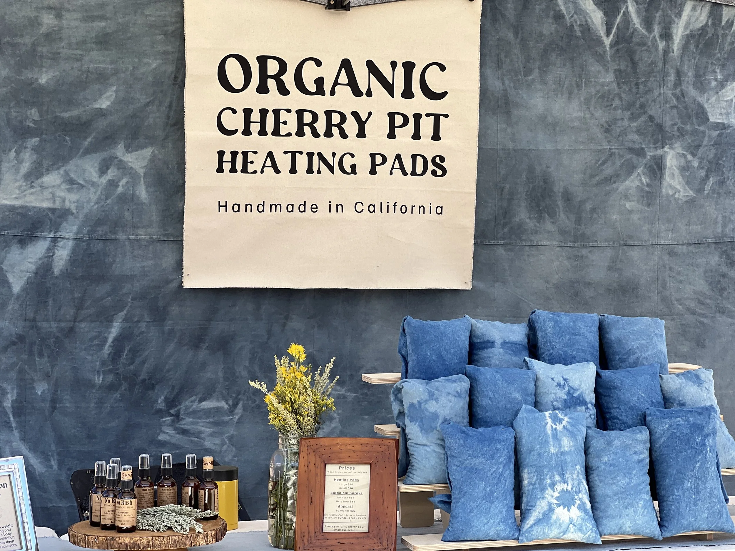 Find relief from pain, stress, and overstimulation. Relax with this all natural companion made only with Indigo-dyed organic cotton flannel fabric filled with California cherry pits.